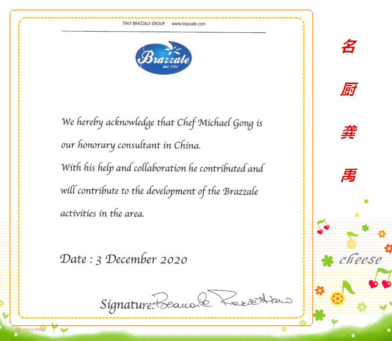祝贺龚禹先生当选为柏札莱集团在中国区的美食名誉顾问。